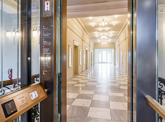 2019 hat die Burgergemeinde der Stadt Bern das Kultur Casino komplett umgebaut und saniert. Unter der Leitung von Campanile Michetti Architekten wurde die heterogene und über die vergangenen Jahrzehnte verbaute Struktur des Casinos entrümpelt und neu organisiert. Die Erschliessung im Eingangsbereich bekam einen repräsentativen Lift, der auch die neuen Büroräume im Dachgeschoss erschliesst. Die maximal transparente Tragstruktur aus Bronze und Glas steht im Treppenauge der prunkvollen Marmortreppe. Ganz so, als ob der Lift schon immer dagestanden hätte.