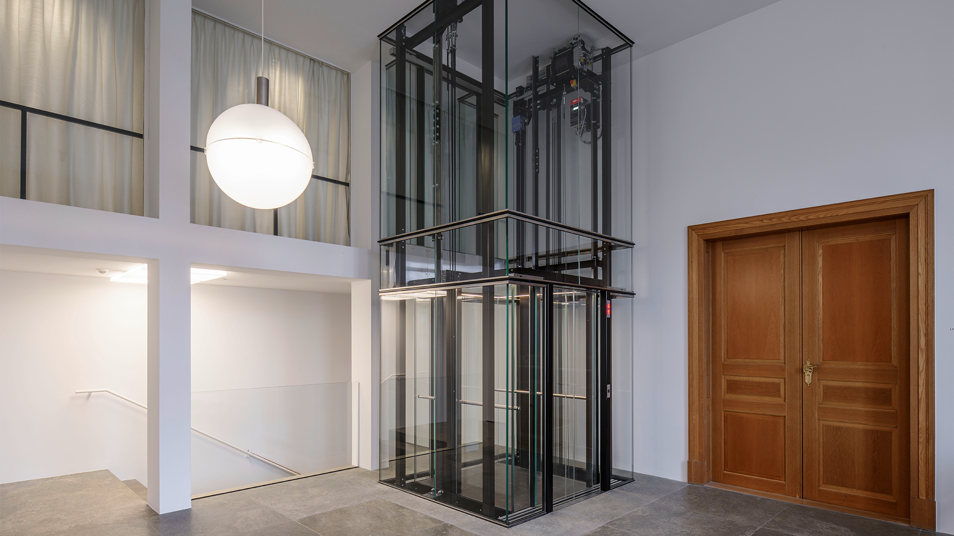 Im Aarauer Grossratsgebäude realisierte EMCH einen hochwertigen Design-Personenaufzug, der sich präzise und zurückhaltend in die bestehende Architektur einfügt. Kabine und Schacht aus Optiwhite-Glas verleihen der Anlage eine klare, elegante Erscheinung und unterstreichen den repräsentativen Charakter des Gebäudes.